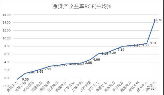 以水電企業(yè)凈資產(chǎn)收益率衡量其自身資本經(jīng)營能力,從圖11中可以看到,文山電力凈資產(chǎn)收益率達(dá)到了14.7%,共有8家水電上市企業(yè)處于行業(yè)平均凈收益率水平5.24%(享能匯計(jì)算)之上,其中長江電力ROE水平僅以6.16%排名第8。