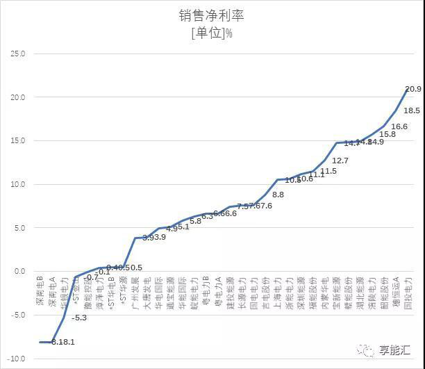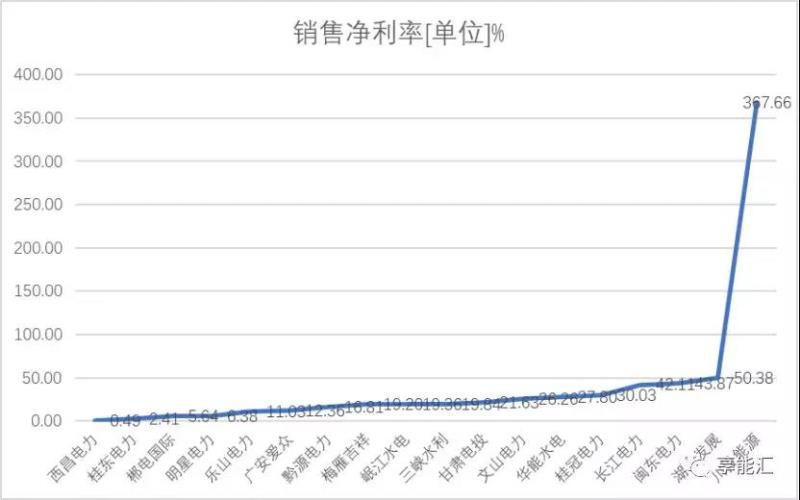 雖然水電行業(yè)的營業(yè)收入都集中在頭部的幾家企業(yè)上面,但是仔細(xì)分析其收入質(zhì)量可以發(fā)現(xiàn)新的不同,享能匯選取了全部18家水電上市企業(yè)的凈利潤率情況,可以看到銷售利潤最高的企業(yè)非營收最高的長江電力,而是營收排名第16位的川投能源,同時(shí)長江電力、湖南發(fā)展、閩東電力等的凈利潤率也都達(dá)到了42.11%、50.38%、43.87%。均高于行業(yè)平均銷售凈利潤水平40.18%。在電力上市企業(yè)中,僅有四家企業(yè)凈利潤位于行業(yè)平均水平之上。