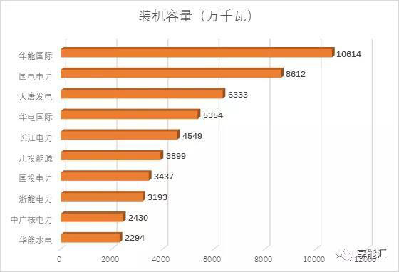 從上市企業(yè)裝機(jī)容量靠前企業(yè)來看,華能國際以10614萬千瓦的裝機(jī)容量列于首位,總體來看,除前4位,其他企業(yè)裝機(jī)容量均低于5000萬千瓦時(shí)。