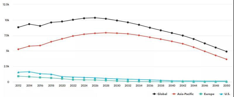 7、煤電繼續(xù)在亞洲部分國家增長,但在世界其他地區(qū)快速衰退。全球煤電發(fā)電量在2026年達峰。