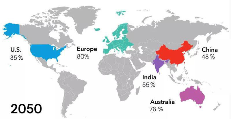 1、到2050年,風(fēng)電和光伏將接近占到全球電力系統(tǒng)裝機量的一半,并將在2030年前幫助電力行業(yè)保持在控制溫升2度以內(nèi)的軌道上。