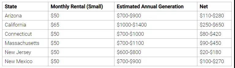 而此次Tesla推出的光伏租賃項(xiàng)目,是光伏領(lǐng)域的一次革新,讓用戶們更容易看到正向收益,并且沒(méi)有前期的購(gòu)買(mǎi)和安裝費(fèi)用,以下表第二行的加州為例,月租金65美元的租賃套餐,每年可以產(chǎn)生1000-1400美元的電量,減去租賃費(fèi)用后,還可以幫用戶節(jié)省250-650美元。