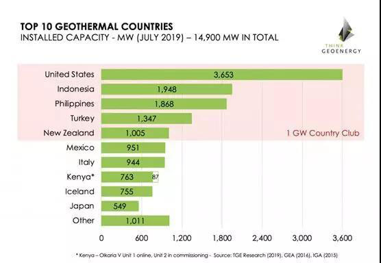 地?zé)岚l(fā)電量全球前十國(guó)家