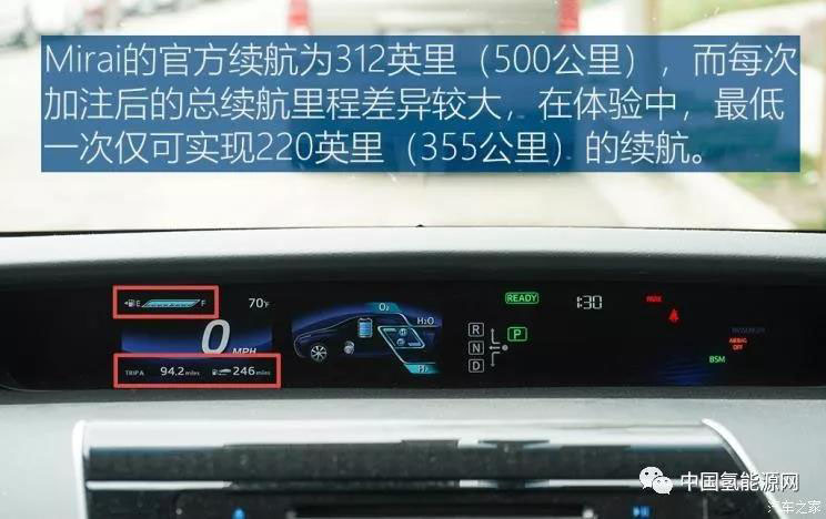 這里重點說一下氫能源汽車?yán)m(xù)航的問題,目前像豐田Mirai、本田CLARITY以及現(xiàn)代NEXO單次加氫都能夠?qū)崿F(xiàn)超過400公里的續(xù)航里程。但每次加氫100%后的續(xù)航里程并不同,高低差能夠接近150km,因為從車輛本身攜帶的氫罐和加氫站都受到溫度、壓強等外界因素的影響,以我租到這臺Mirai,在三次加氫后總續(xù)航里程均不同,而純電動車則不會有這種情況。