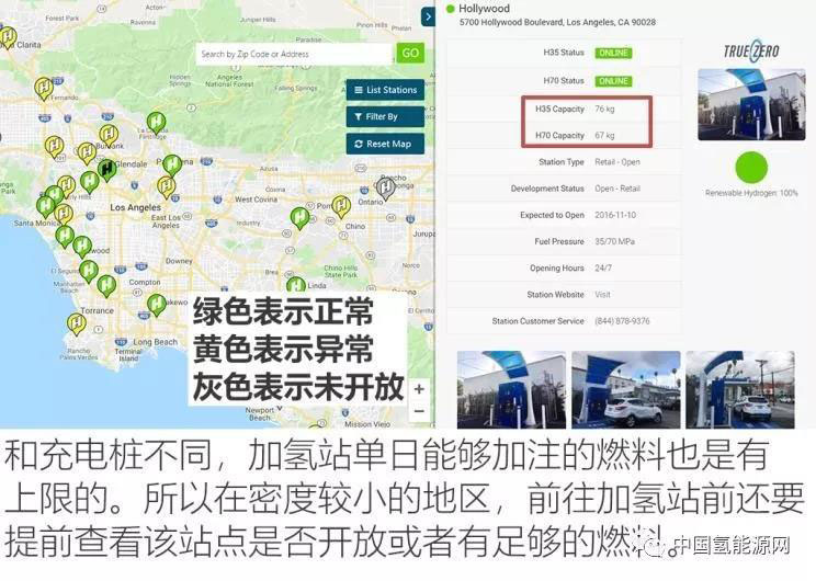 因為續(xù)航能力有較大的誤差,以加州地區(qū)來看,一旦出了城市后,低覆蓋度的加氫站基本上讓目前氫能源汽車放棄中長途出行的可能性。以豐田Mirai為例,對于加氫站的依賴導(dǎo)致在城市外的氫站密度必須控制在200km左右。在這一點上,反而建設(shè)速度快且成本更低的充電樁設(shè)施顯得更有優(yōu)勢一些,畢竟有地方補給才是最關(guān)鍵的。