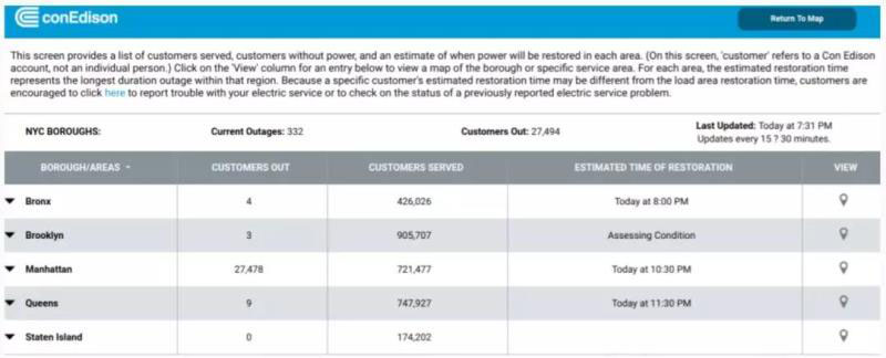 停電發(fā)生于紐約當(dāng)?shù)貢r間7月13日星期六晚上6點47分,當(dāng)時紐約市的溫度攝氏28度。電力公司Con Edison表示停電波及范圍主要是在曼哈頓中城的西側(cè),從時代廣場到第72街和百老匯的30個區(qū)塊內(nèi)到洛克菲勒中心,73,000名客戶受影響超過3個小時。