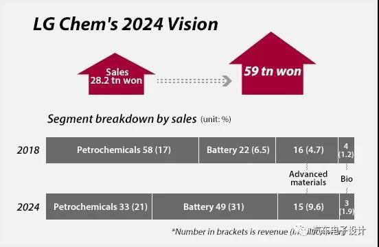 最近LG化學(xué)發(fā)布了2024 Vision,按照5年來規(guī)劃,要把電池占整個(gè)公司的比重,從原來的22%提升到49%,超過其他化工的項(xiàng)目。電池業(yè)務(wù)要拉到近31萬(wàn)億韓元。
