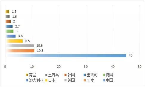 2018年全球光伏新增裝機(jī)前十國(guó)家(單位:GW)