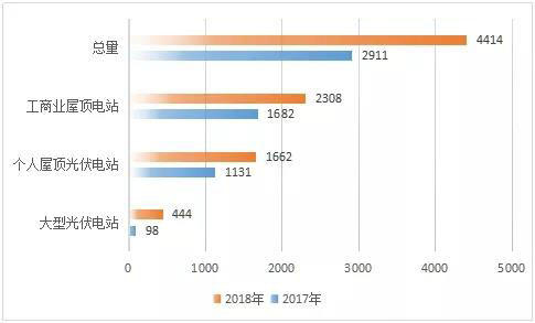 2017-2018年荷蘭光伏累計(jì)裝機(jī)(分類型)量(單位:MW)