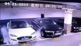 瞬間爆發(fā)的火光和濃煙,不僅燒毀了特斯拉,也殃及了旁邊的數(shù)輛車。4月21日晚間特斯拉在上海一小區(qū)地庫自燃的一幕,讓人們?yōu)橹戭澬捏@。