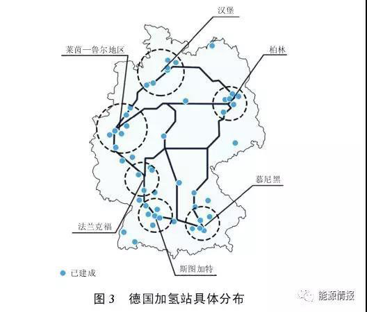 H2Mobility計劃在漢堡、柏林、魯爾、法蘭克福、斯圖加特、慕尼黑六大都市圈的主干道和高速公路上建成100座加氫站,其中以上六大城市圈各布局10座,其余40座布局在相鄰城市之間,作為加氫站網(wǎng)絡(luò)的連接站和目的地站,形成環(huán)網(wǎng)狀氫能高速公路。