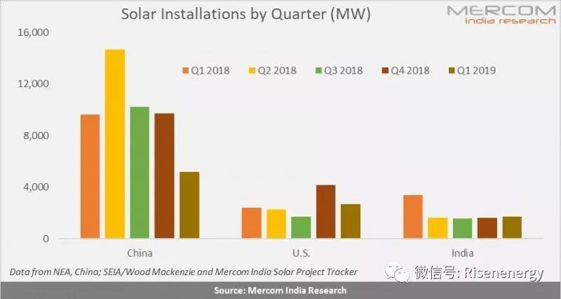 印度在2019年第一季度(Q1)仍然是第三大太陽(yáng)能光伏(PV)市場(chǎng)。美國(guó)連續(xù)第二個(gè)季度成為僅次于中國(guó)的全球第二大太陽(yáng)能市場(chǎng)。