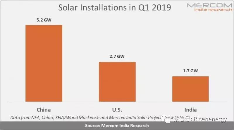 據(jù)太陽(yáng)能產(chǎn)業(yè)協(xié)會(huì)(SEIA)稱,在2019年第一季度,美國(guó)安裝了2.7吉瓦的太陽(yáng)能光伏發(fā)電。相比之下,2019年第一季度印度的太陽(yáng)能裝機(jī)容量為1.7吉瓦。