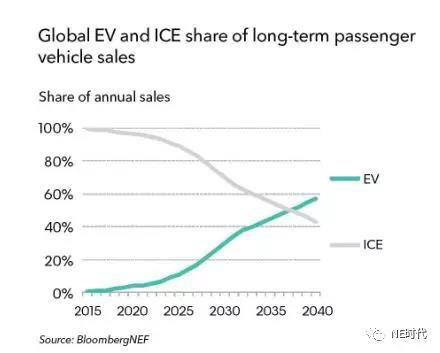 到2040年電動(dòng)汽車(chē)占去整體銷(xiāo)量的57%,并且在全球運(yùn)營(yíng)車(chē)中占去30%的比重。