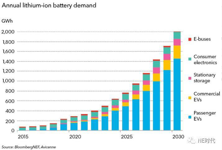 BNEF預(yù)測(cè),到2030年電動(dòng)汽車(chē)對(duì)鋰電池的需求量將快速增長(zhǎng),超過(guò)1,748GWh。