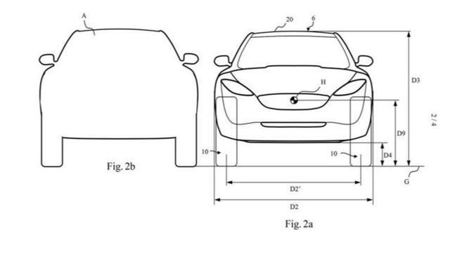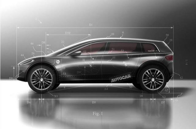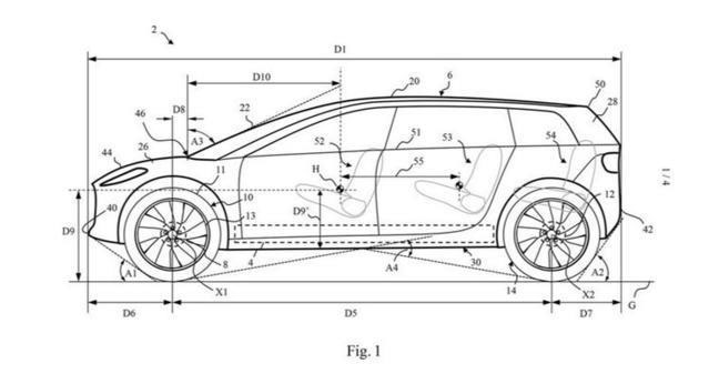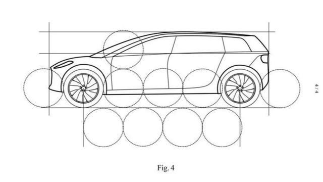 雖然是專利圖,但是我們?nèi)匀豢梢钥闯鲆恍┐魃嚨奶厣瑯O短的前后懸,超長的軸距,超大的輪轂,D柱走線介乎于SUV與MPV之間,跨界風(fēng)格還是很濃的。