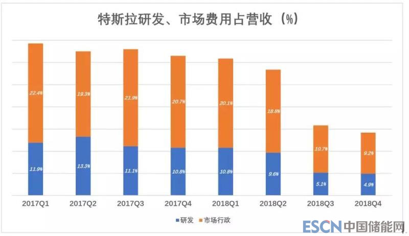 特斯拉披露,2018年裁員成本為2730萬(wàn)美元并,將在2019年大量關(guān)閉線下門(mén)店,只保留交通要道的個(gè)別門(mén)店用于展示并提供咨詢。這些舉措意味著市場(chǎng)費(fèi)用的進(jìn)一步壓縮。