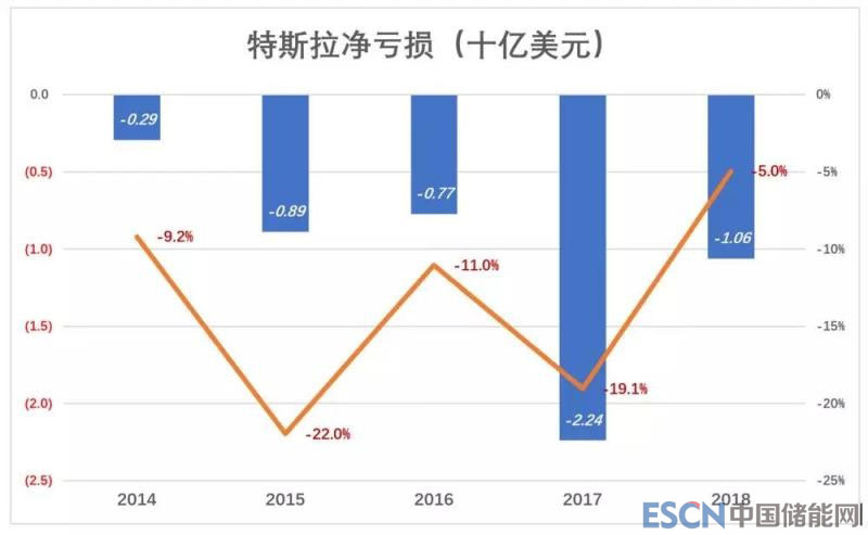2018年,特斯拉凈虧損10.6億美元(股權(quán)激勵(lì)成本7.49億美元),相當(dāng)于2017年的47.4%,虧損率5%。最近5年,特斯拉最大虧損率為2015年的22%(某些中概公司虧損率高達(dá)100%~200%)。