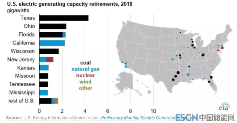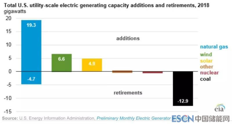中國儲能網(wǎng)訊:根據(jù)美國能源信息署的數(shù)據(jù),2018年美國新建31.3吉瓦發(fā)電容量,但同年有18.7吉瓦退役。