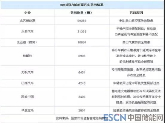 下面的一組數(shù)據(jù)可能會讓大家對新能源車的整體質量有一個直觀印象。2018年國內300多家新能源車企累計銷售127萬輛新能源車,但國家市場監(jiān)督總局全年共召回了13.57萬新能源缺陷車輛,召回比例高達13.46%。其召回原因主要集中在電池和剎車助力泵這兩方面的問題。