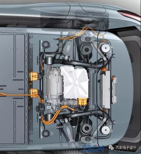 從尾部來看,在這個(gè)MEB平臺下,車載充電機(jī)和DCDC的布置可以有點(diǎn)變化,可以每個(gè)車不大一樣