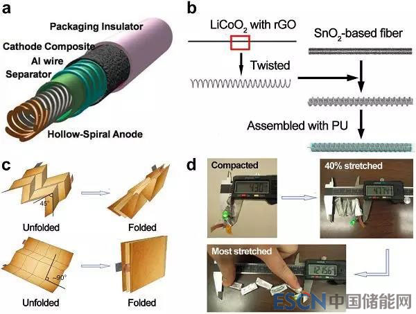 a) 該策略最初被JeYoung Kim等人報(bào)道于其線形電池的工作中,該電池不僅能夠適應(yīng)彎折形變,還能夠適應(yīng)更復(fù)雜的形狀變化,例如折疊和扭轉(zhuǎn)。