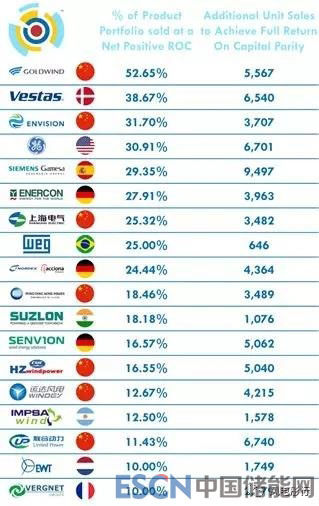 那一段時(shí)期里,這個(gè)事實(shí)促進(jìn)了行業(yè)重大整合,使得全球風(fēng)機(jī)制造商數(shù)量從一度超過(guò)200家,到后來(lái)僅剩下37家。在剩下的37家中的18家制造商,他們?cè)阡N售的產(chǎn)品中至少有一個(gè)產(chǎn)品體現(xiàn)為正的投資收益率。為了達(dá)到凈的綜合資本回報(bào)率為正,這些廠家全都需要多得多的額外銷售訂單才能得以實(shí)現(xiàn)。