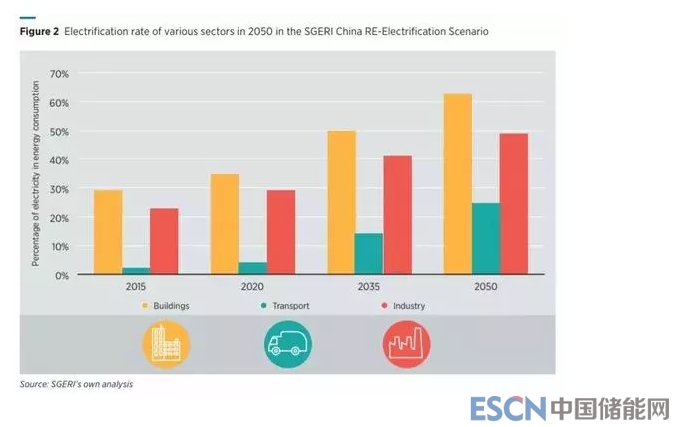 在中國,國家電網(wǎng)能源研究所(SGERI)的研究表明,中國最終能源使用總量中的電力份額可能會從目前的21%增長到2050年的47%。2015年至2050年能源使用總量將增加約30%,而電力消耗將增長140%。