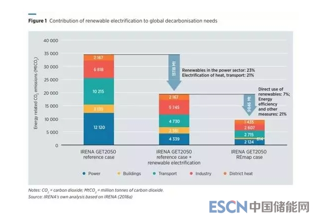 IRENA預(yù)測,2050年全球可以使用十億輛電動汽車,使用熱泵的供暖的建筑物可能會增加十倍,數(shù)量可能超過2.5億臺。