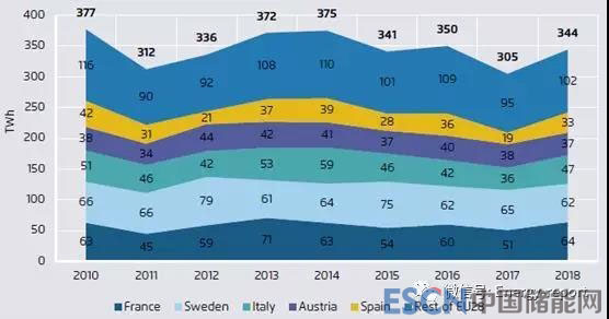 2017年和2018年歐洲發(fā)電結(jié)構(gòu)