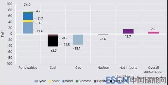 煤電和氣電的燃料和碳成本首次與風電和光伏的完全成本相當。2018年煤電和氣電成本上升:煤價同比上漲15%,天然氣價格同比上漲30%,二氧化碳價格同比上漲170%。因此,歐洲的電價升至45~60歐元/兆瓦時。這個價格水平與德國最新的風電和光伏拍賣價格相當。