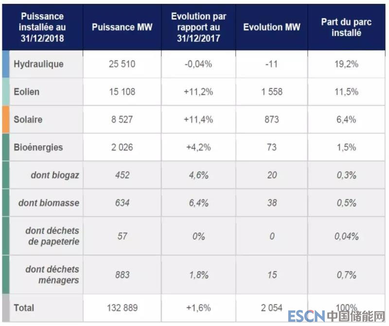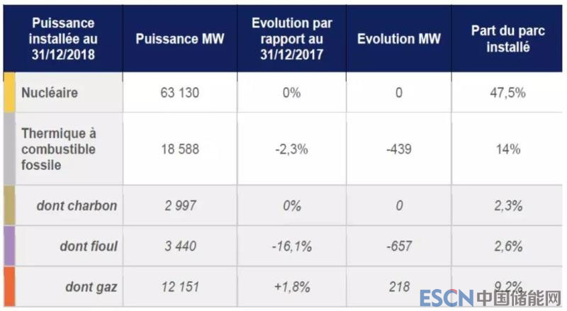 中國儲能網(wǎng)訊:根據(jù)法國國家電網(wǎng)RTE最新發(fā)布的統(tǒng)計數(shù)據(jù),2018年底法國本土發(fā)電裝機(jī)容量為132.889吉瓦,其中核電63.130吉瓦(47.5%)、水電25.510吉瓦(19.2%)、風(fēng)電15.108吉瓦(11.5%)、天然氣電12.151吉瓦(9.2%)、太陽能發(fā)電8.527吉瓦(6.4%)、燃油發(fā)電3.440吉瓦(2.6%)、煤電2.997吉瓦(2.3%)、生物質(zhì)發(fā)電2.026吉瓦(1.5%)。