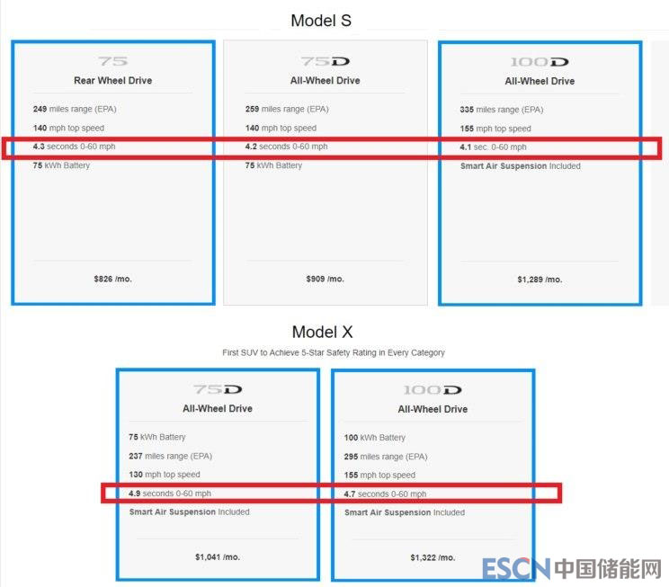 中國(guó)儲(chǔ)能網(wǎng)訊:日前,我們從海外媒體獲悉,特斯拉將為旗下車型再次升級(jí)動(dòng)力系統(tǒng)。具體升級(jí)信息為MODEL S 75的0-96km/h加速成績(jī)從5.5秒升級(jí)為4.3秒,MODEL S 75D從5.2秒升級(jí)為4.2秒,MODEL S 100D從4.2秒升級(jí)為4.1秒,MODEL X 75D從之前的6.0秒升級(jí)為4.9秒,MODEL X 100D從之前的5.2秒升級(jí)為4.7秒。需要注意的是,本次升級(jí)僅針對(duì)未售車型,已售車型將不在升級(jí)范圍內(nèi)。