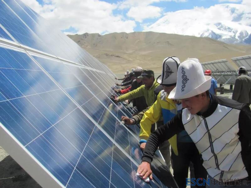 圖為中興能源在新疆克孜勒蘇柯爾克孜自治州阿克陶縣布倫口鄉(xiāng)蘇巴什村修建的光伏電站