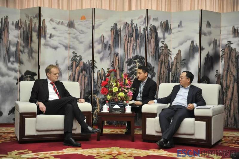 司徒嘉德先生(左一)對話南瑞集團董事長、黨委書記奚國富先生(右一)