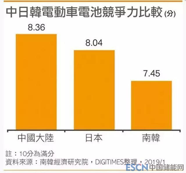 根據(jù)韓媒ET News的報導(dǎo),有鑒于韓國電動汽車電池市占率面臨衰退危機(jī),韓國各界正積極尋求對策。韓國經(jīng)濟(jì)研究院稍早發(fā)布最新調(diào)查報告,指出全球80%電池市場成由中日韓三國把持,如果將競爭力設(shè)定10分為滿分,針對產(chǎn)學(xué)研專家進(jìn)行中日韓三國的動力電池競爭力意見調(diào)查,結(jié)果發(fā)現(xiàn)中國得分最高(8.36分),其次是日本(8.04分),韓國則是敬陪末座(7.45分)。