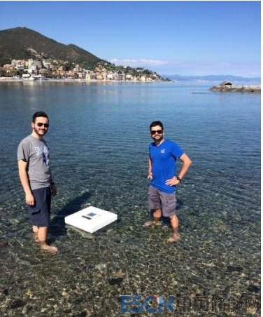 在利古里亞海(意大利瓦拉茲)進行測試的太陽能蒸餾器。