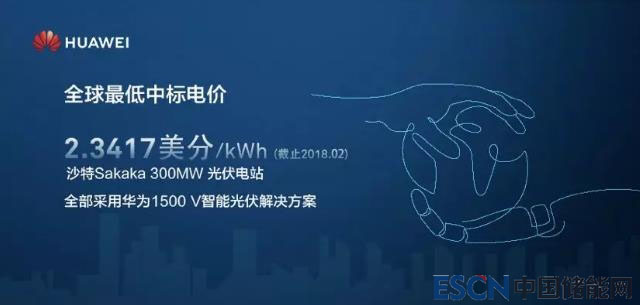 中國儲能網訊:2018年2月,沙特電站開發(fā)商ACWA以2.3417美分/kWh(合RMB 0.16元/kWh)價格中標沙特阿拉伯北部Al Jouf地區(qū)的Sakaka 300MW光伏項目,這是沙特自發(fā)布《愿景2030》以來的首個大型地面光伏電站,也是當時全球最低中標電價項目。