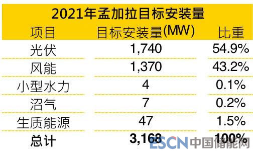 孟加拉政府在2021年愿景計(jì)劃(Vision 2021)中訂定3,168MW的再生能源目標(biāo)安裝量,屆時(shí)預(yù)計(jì)能滿足國內(nèi)10%的發(fā)電量,其中推動(dòng)的項(xiàng)目著重在光伏和風(fēng)力,兩者分別訂定1.74GW和1.37GW的目標(biāo)。
