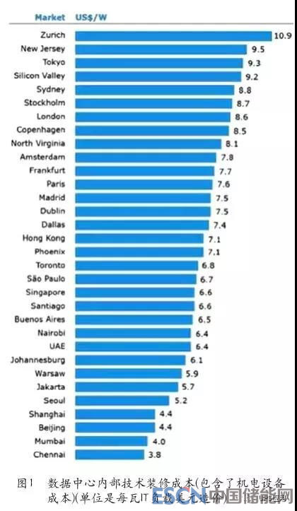 隨著中國數(shù)據(jù)中心市場的快速發(fā)展,北京和上海也被加入調查范圍,這兩個區(qū)域比其姐妹城市香港的成本便宜了近40%。為4.4vs7.1美元/瓦。