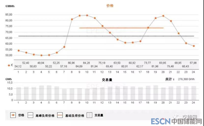 典型日前市場的價格走勢圖示例來源:EPEX SPOT