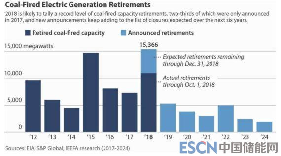IEEFA目前預(yù)計,2018年期間美國共有15.4吉瓦的燃煤發(fā)電能力將關(guān)閉,由美國14個州的22家電站的44個發(fā)電設(shè)施組成。