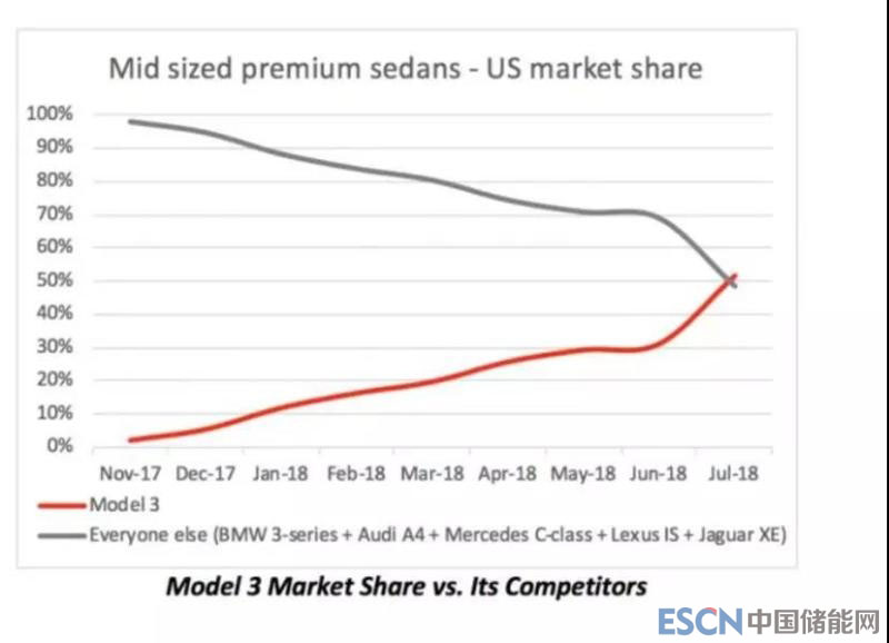 當(dāng)?shù)貢r(shí)間8月1日,特斯拉公布了2018年第二季度財(cái)報(bào),報(bào)告顯示,第二季度特斯拉生產(chǎn)車輛53,339輛,交付40,768輛,包括22,319輛Model S和Model X以及18,449輛Model 3。Model 3周產(chǎn)量已達(dá)到五千輛,且市場(chǎng)占有率已超過諸多競(jìng)爭(zhēng)對(duì)手之和。