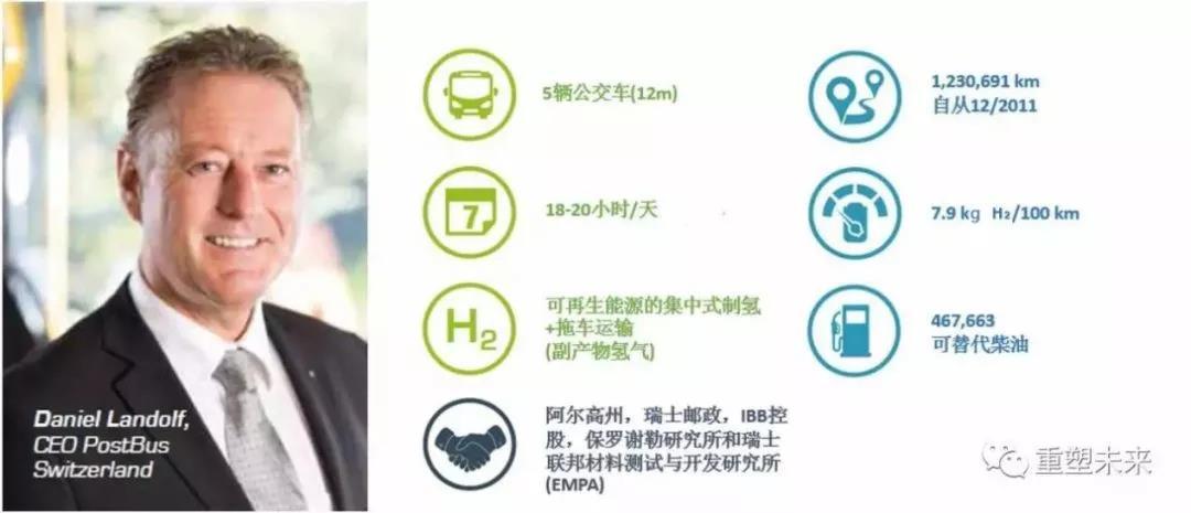 瑞士北部的阿爾高州是該國(guó)人口最密集的地區(qū)之一,該城采取了相應(yīng)的能源戰(zhàn)略來減少當(dāng)?shù)氐奶寂欧?。為了達(dá)到這些目標(biāo),阿爾高州開展了包括燃料電池客車和柴油混合動(dòng)力車的部署。負(fù)責(zé)運(yùn)營(yíng)該項(xiàng)目的瑞士郵政巴士(PostBus)CEO Daniel Landolf對(duì)燃料電池技術(shù)評(píng)價(jià)積極:“PostBus對(duì)項(xiàng)目非常樂觀。燃料電池巴士為乘客提供安靜而平穩(wěn)的出行,受到乘客和司機(jī)的廣泛關(guān)注和歡迎?!?