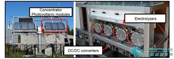 研究人員利用宮崎大學開發(fā)的高效聚光光伏電池(輸出功率為470 W)成功的電解了水,以18.8%的效率將太陽能(日平均值)轉換為氫能,這是室外實驗中實際系統(tǒng)所達到的最高效率。