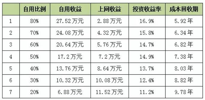 再計算收益,400kW在浙江地區(qū),平均每年發(fā)電40萬度,自用比例為80%,按0.86元每度價格算,每年收益為27.52萬元,余量上網(wǎng)比例為20%,以脫硫電價0.36元賣給電網(wǎng)公司,總費用為2.88萬元,加起來為30.4萬元。