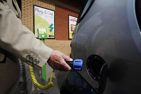 英國倫敦,顧客在充電點(diǎn)為電動(dòng)車充電。視覺中國 資料圖