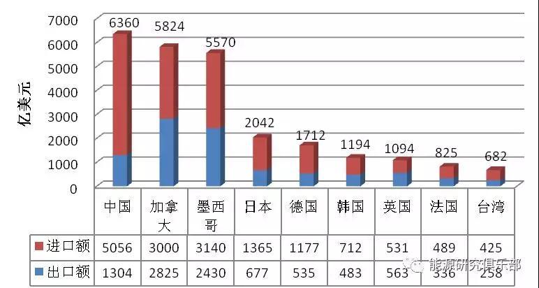 圖1 2017年美國(guó)與主要貿(mào)易伙伴國(guó)貿(mào)易情況