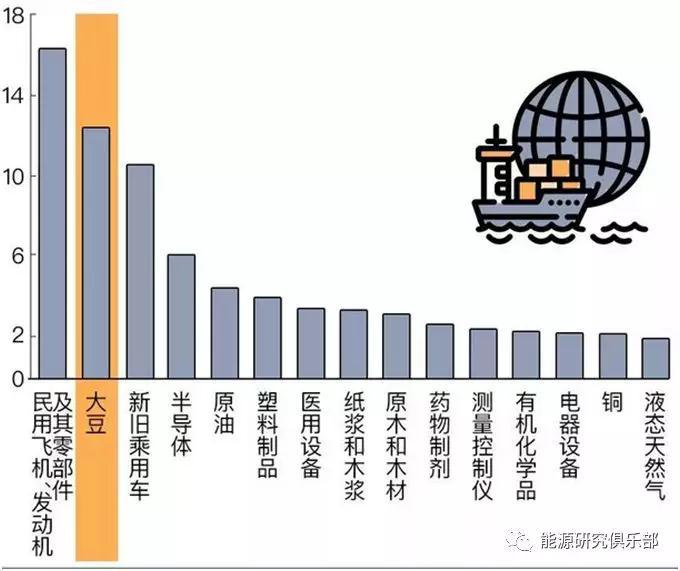 圖3 2017年美國(guó)對(duì)華出口主要貨物貿(mào)易額(十億美元)