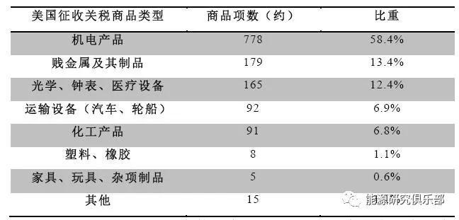 美國(guó)征稅清單還需確認(rèn)落地執(zhí)行,目前看能源行業(yè)直接受損很少,電力設(shè)備行業(yè)受影響較大,其中涉及機(jī)電產(chǎn)品778項(xiàng),占比58.4%,但對(duì)電力行業(yè)影響有限。被納入美國(guó)征稅清單的包括電氣設(shè)備、風(fēng)電設(shè)備、核反應(yīng)堆、電動(dòng)汽車零部件、電池等。具體影響如下:
